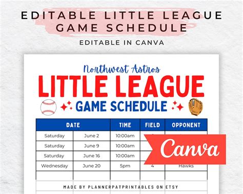 Online PDF Little-league-game-schedule-template Paperback Library Genesis