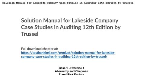 GTM - Download LAKESIDE COMPANY AUDITING CASES SOLUTION Paperback Internet Archive